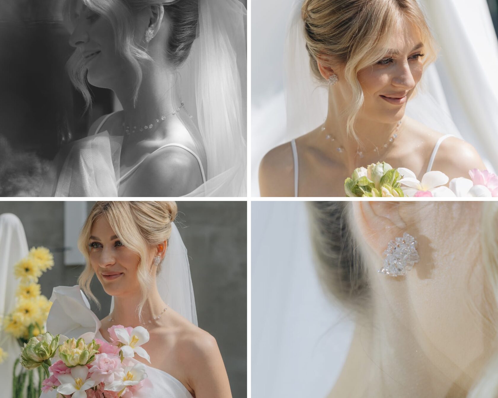Невеста хотела подобрать лаконичные украшения без жемчуга, которые будут сочетаться между собой.